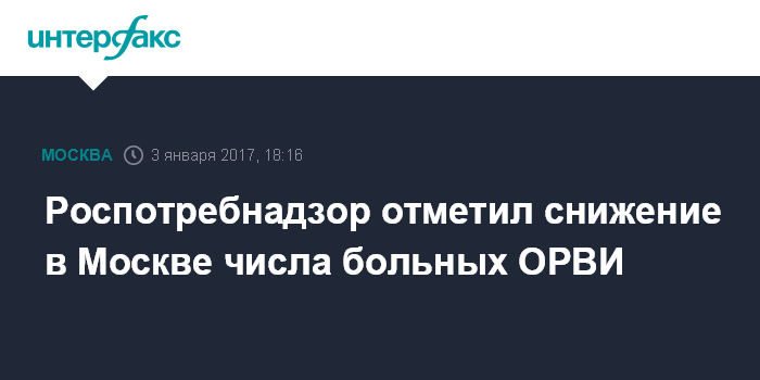 Москва. 3 января. INTERFAX.RU - По данным регистрационного учета инфекционной заболеваемости в Москве, за последнюю неделю 2016 года отмечена стабилизация эпидемиологической ситуации по ОРВИ и тенденция к ее улучшению, сообщает столичное управление Роспотребнадзора во вторник.
