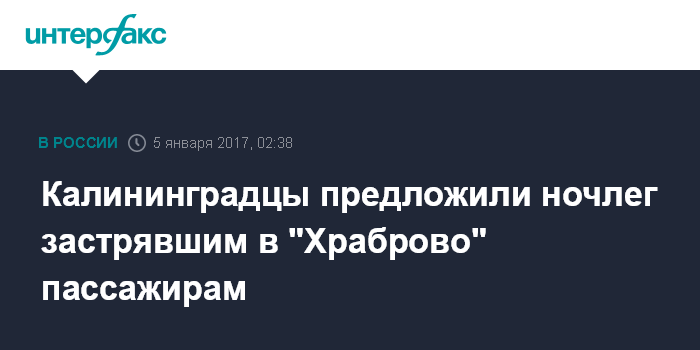 Москва. 5 января. INTERFAX.RU - Жители Калининграда и области в социальных сетях активно предлагают ночлег и ужин пассажирам, вынужденным ночевать в аэропорту "Храброво".