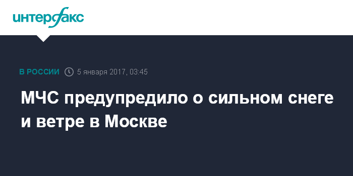 Москва. 5 января. ИНТЕРФАКС - Столичное ГУ МЧС России распространило экстренное предупреждение о неблагоприятных погодных явлениях в виде снега и ветра.
