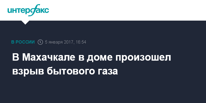 Москва. 5 января. INTERFAX.RU - Взрыв бытового газа произошел в городе Махачкала, сообщили в четверг в главном управлении МЧС России по Дагестану.