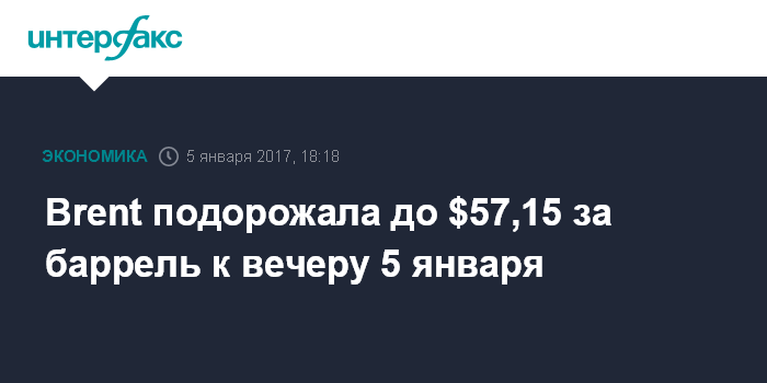 Brent подорожала до $57,15 за баррель к вечеру 5 января