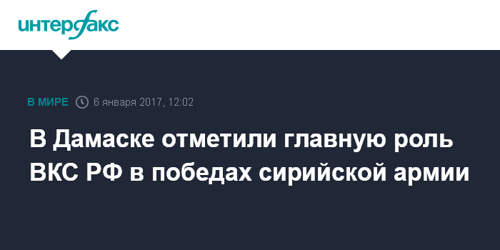 Москва. 6 января. INTERFAX.RU - Поддержка Воздушно-космических сил России сыграла основную роль в недавних победах армии Сирии, заявил в пятницу начальник генерального штаба вооружённых сил республики Али Айюб.