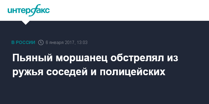 Москва. 6 января. INTERFAX.RU - Житель города Моршанска (Тамбовская область) поздно вечером в четверг, находясь в состоянии алкогольного опьянения, открыл стрельбу из частного дома по соседям и подъехавшим на вызов сотрудникам полиции, сообщила пресс-служба регионального управления МВД.