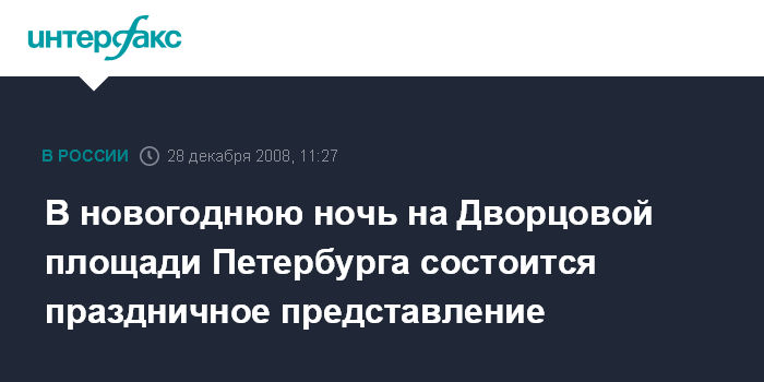 В новогоднюю ночь на Дворцовой площади Петербурга состоится праздничное представление