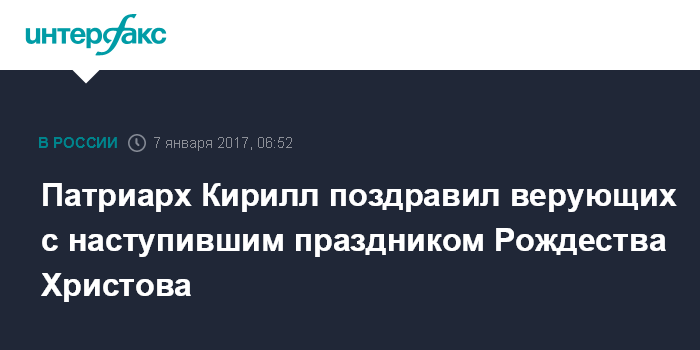 Патриарх Кирилл поздравил верующих с наступившим праздником Рождества Христова