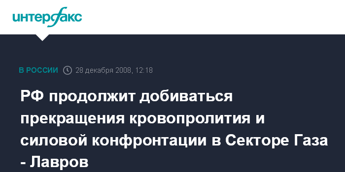 РФ продолжит добиваться прекращения кровопролития и силовой конфронтации в Секторе Газа - Лавров