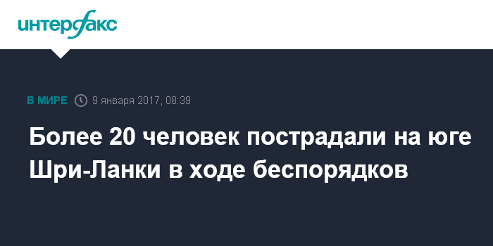 Москва. 9 января. INTERFAX.RU - Не менее 21 человека, включая трех полицейских, получили ранения в результате беспорядков, вспыхнувших в субботу на юге Шри-Ланки в районе портового города Хамбантота, сообщает агентство The Associated Press.