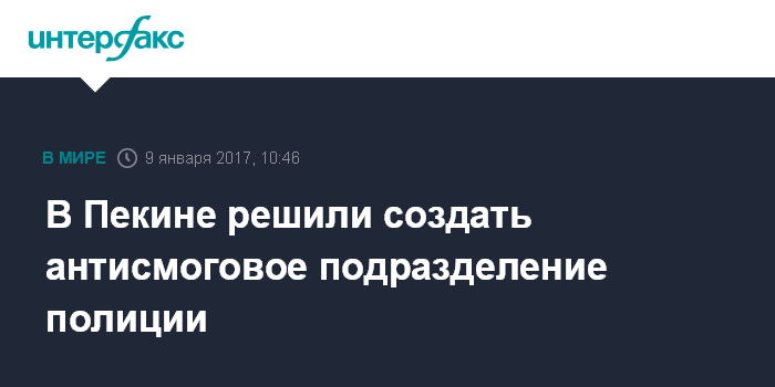 Власти китайской столицы задумались о формировании антисмоговой полиции после того, как город провел первую неделю 2017 года, будучи окутанным густым дымом. В функции полицейских будет входить патрулирование улиц для выявления источников горения мусора, пресечение действий лиц, разводящих костры, в том числе для барбекю, обнаружение причин, повышающих уровень запыленности воздуха.