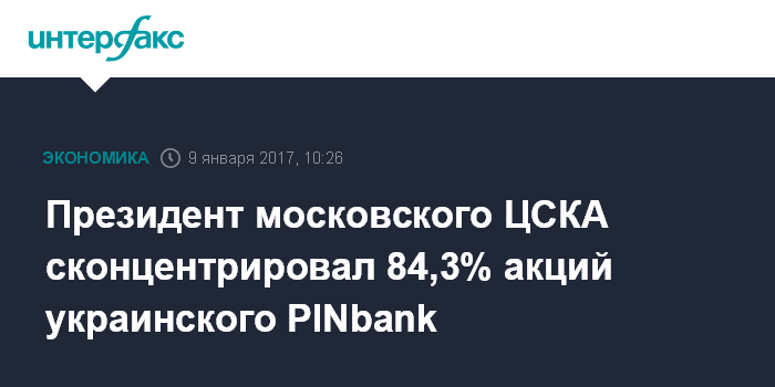 Президент московского ЦСКА сконцентрировал 84,3% акций украинского PINbank