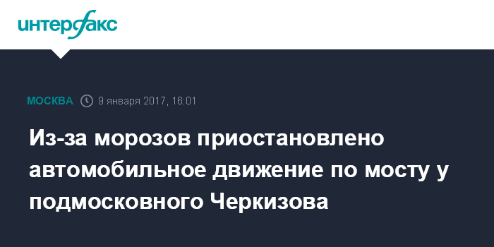 Из-за морозов приостановлено автомобильное движение по мосту у подмосковного Черкизова