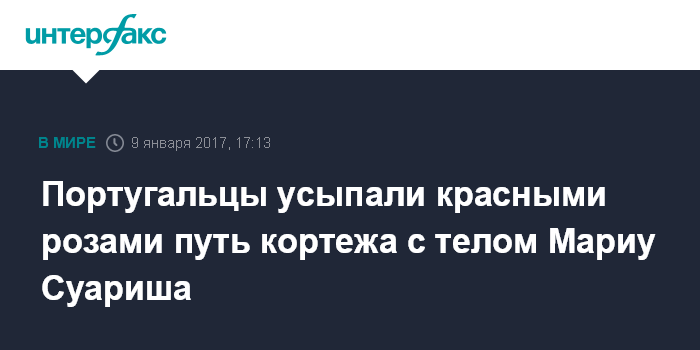 Москва. 9 января. INTERFAX.RU - Тысячи португальцев во вторник отдали дань памяти основателю Социалистической партии страны, бывшему президенту страны Мариу Суаришу, который скончался в больнице в субботу.