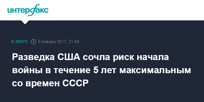 Разведка США сочла риск начала войны в течение 5 лет максимальным cо времен СССР