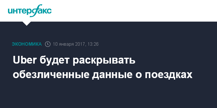 Москва. 10 января. INTERFAX.RU - Uber, борющаяся с регуляторами от Сиэтла до Парижа за то, чтобы не разглашать данные о пассажирских перевозках, решила сделать некоторую информацию свободно доступной через интернет, пишет The Wall Street Journal.