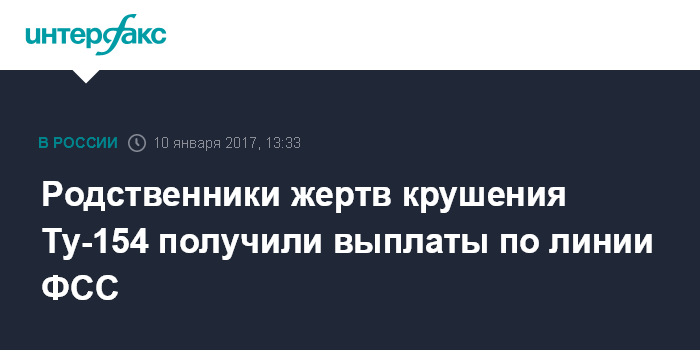 Родственники жертв крушения Ту-154 получили выплаты по линии ФСС