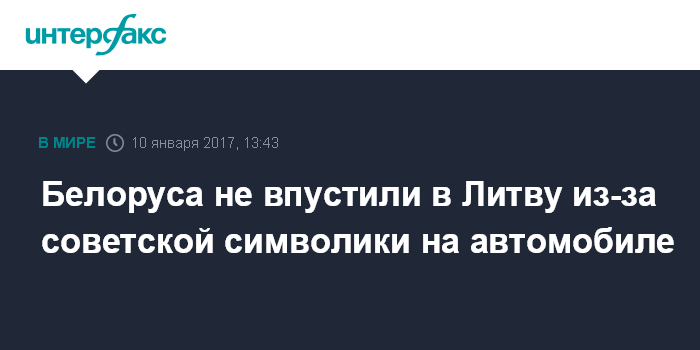 Москва. 10 января. INTERFAX.RU - Литовские пограничники не пропустили в страну гражданина Белоруссии из-за советской символики на автомобиле, сообщила во вторник Служба охраны госграницы Литвы.