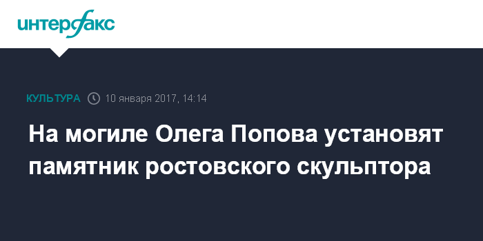 На могиле Олега Попова установят памятник ростовского скульптора