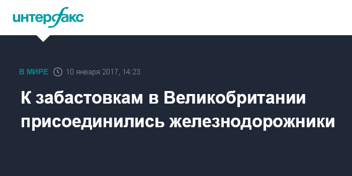 Москва. 10 января. INTERFAX.RU - Жители Великобритании и туристы во вторник столкнулись с транспортными проблемами из-за забастовки работников железнодорожного транспорта, сообщает "Би-би-си".