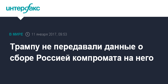 Как сообщили ранее некоторые американские СМИ, на прошлой неделе президенту США Бараку Обаме и Трампу в докладе о кибератаках были представлены документы о том, что "российские агенты" якобы обладают данными личного и финансового характера, компрометирующими избранного президента.