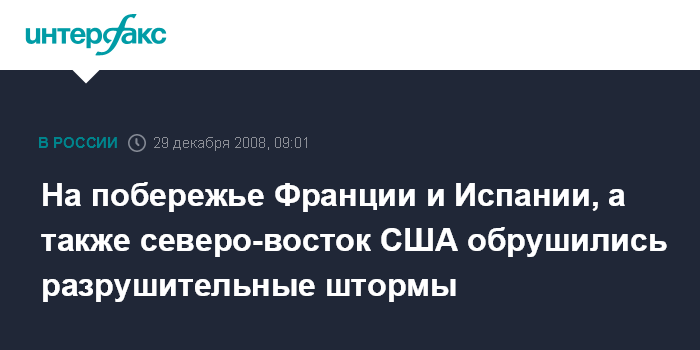 На побережье Франции и Испании, а также северо-восток США обрушились разрушительные штормы