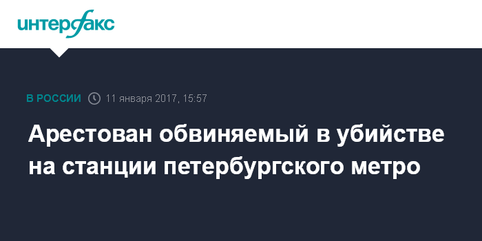 Москва. 11 января. INTERFAX.RU - Смольнинский районный суд Санкт-Петербурга отправил под арест мужчину, обвиняемого в убийстве на станции метрополитена "Площадь Александра Невского", сообщили "Интерфаксу" в пресс-службе Горсуда в среду.