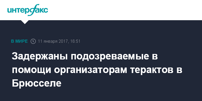Москва. 11 января. INTERFAX.RU - В брюссельской коммуне Лакен задержана пара, которую подозревают в оказании логистической помощи исполнителям терактов 22 марта 2016 года в Брюсселе братьям Ибрагиму и Халиду эль-Бакрауи, сообщила в среду газета "Дерньер Эр".