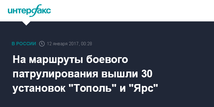 На маршруты боевого патрулирования вышли 30 установок "Тополь" и "Ярс"