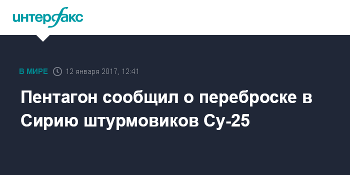 Москва. 12 января. INTERFAX.RU - Россия перебросила в Сирию дополнительные силы ударной авиации, сообщает телеканал Fox News со ссылкой на два источника в руководстве Пентагона.