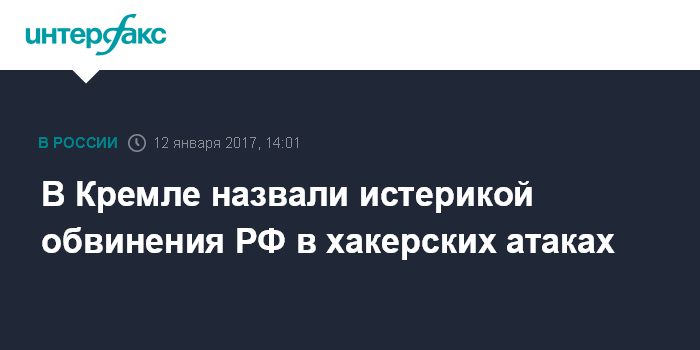 Москва. 12 января. INTERFAX.RU - Пресс-секретарь президента РФ Дмитрий Песков назвал истерикой непрекращающиеся обвинения России в хакерских атаках.