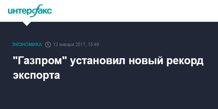 Москва. 12 января. INTERFAX.RU - "Газпром" 11 января установил новый исторический рекорд поставок газа на экспорт в дальнее зарубежье - 624 млн куб. м газа в сутки, сообщила компания.