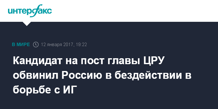 Кандидат на пост главы ЦРУ обвинил Россию в бездействии в борьбе с ИГ