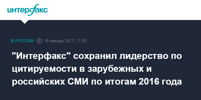 "Интерфакс" сохранил лидерство по цитируемости в зарубежных и российских СМИ по итогам 2016 года