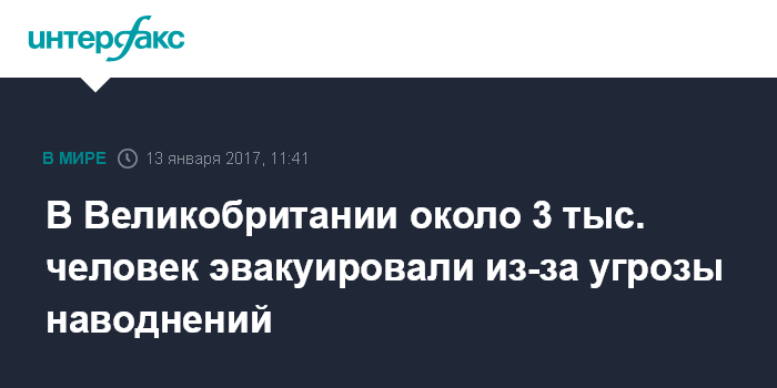 Москва. 13 января. INTERFAX.RU - Около 3 тысяч жителей восточного побережья Великобритании эвакуируют из-за угрозы наводнения, вызванной штормом, сообщает в пятницу "Би-Би-Си".
