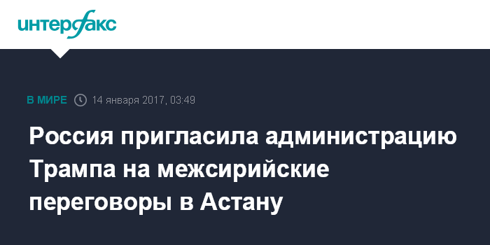 Москва. 14 января. INTERFAX.RU - Россия пригласила представителей будущей администрации президента США Дональда Трампа на межсирийские переговоры в Астане, пишет в пятницу издание The Washington Post со ссылкой на члена переходной команды.