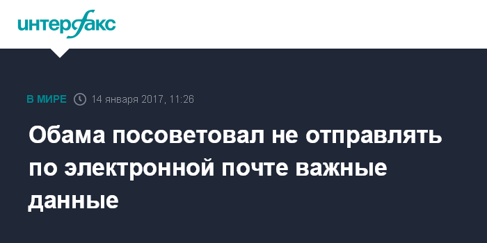 Москва. 14 января. INTERFAX.RU - Президент США Барак Обама заявил, что не пересылает по электронной почте информацию, если у него есть основания не желать их публикации в СМИ.
