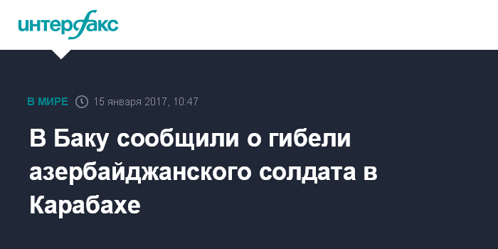 Москва. 15 января. INTERFAX.RU - Азербайджанский военнослужащий погиб в зоне карабахского конфликта, сообщает Минобороны Азербайджана.
