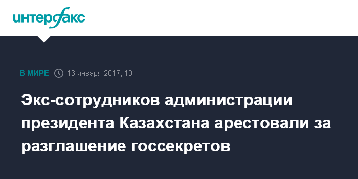 "12 января 2017 года КНБ Казахстана по подозрению в совершении преступления, предусмотренного ч. 1, 3 ст.185 (Незаконное собирание, распространение, разглашение государственных секретов) Уголовного кодекса республики Казахстан, задержаны бывшие работники администрации президента Майлыбаев и НГалихин", - говорится на сайте КНБ в понедельник.