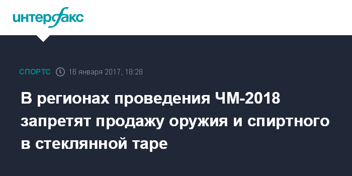В регионах проведения ЧМ-2018 запретят продажу оружия и спиртного в стеклянной таре