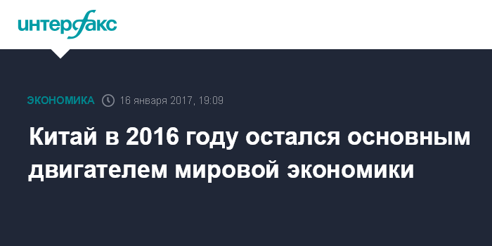 Москва. 16 января. INTERFAX.RU - Рост китайской экономики в 2016 году составил около 6,7%, свидетельствуют предварительные расчеты Государственного статистического управления (ГСУ) КНР. Вклад Китая в подъем глобальной экономики превышает 30%. Таким образом, Китай остается ведущим двигателем мирового ВВП, заявили представители ведомства.