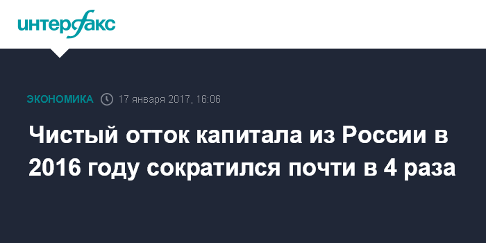 Чистый отток капитала из России в 2016 году сократился почти в 4 раза