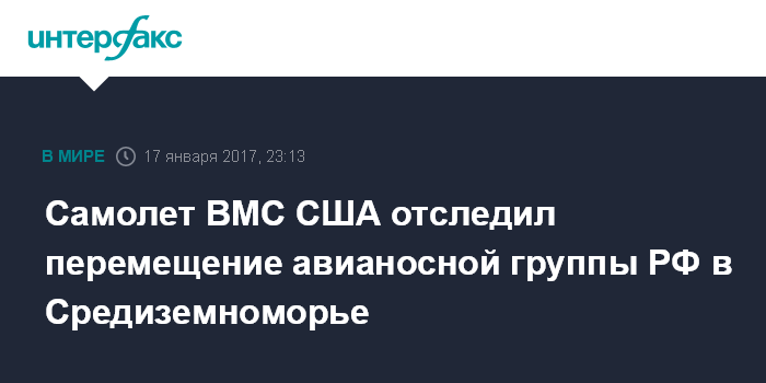 Cамолет ВМС США отследил перемещение авианосной группы РФ в Средиземноморье