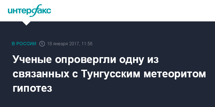 Москва. 18 января. INTERFAX.RU - Новосибирские и красноярские ученые опровергли одну из гипотез, связанную с Тунгусским метеоритом.