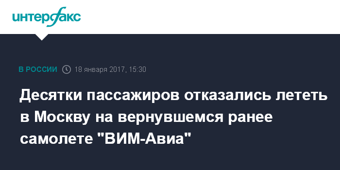 Десятки пассажиров отказались лететь в Москву на вернувшемся ранее самолете "ВИМ-Авиа"