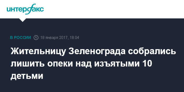Москва. 18 января. INTERFAX.RU - Столичные власти намерены лишить опеки жительницу Зеленограда, из приемной семьи которой на прошлой неделе были изъяты 10 детей, заявил глава департамента труда и социальной защиты Москвы Владимир Петросян.
