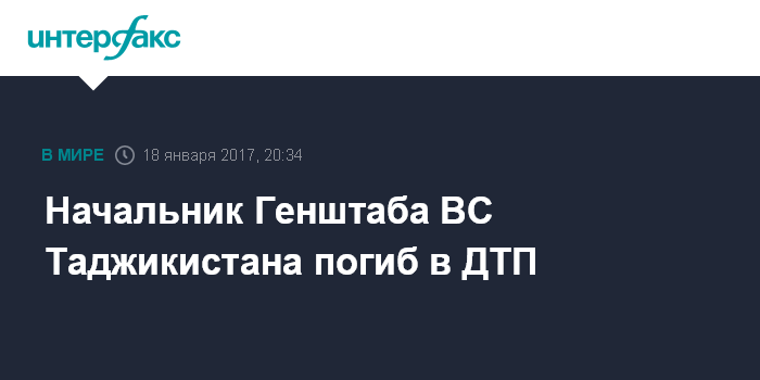 Начальник Генштаба ВС Таджикистана погиб в ДТП