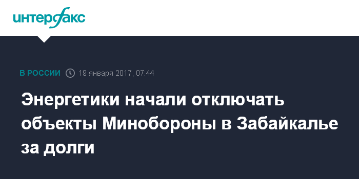 Энергетики начали отключать объекты Минобороны в Забайкалье за долги