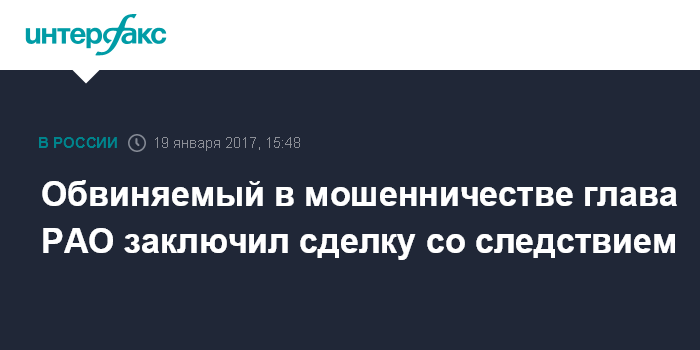 Обвиняемый в мошенничестве глава РАО заключил сделку со следствием