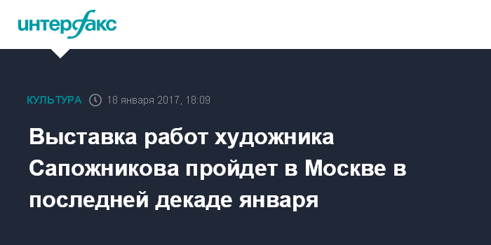 Выставка работ художника Сапожникова пройдет в Москве в последней декаде января