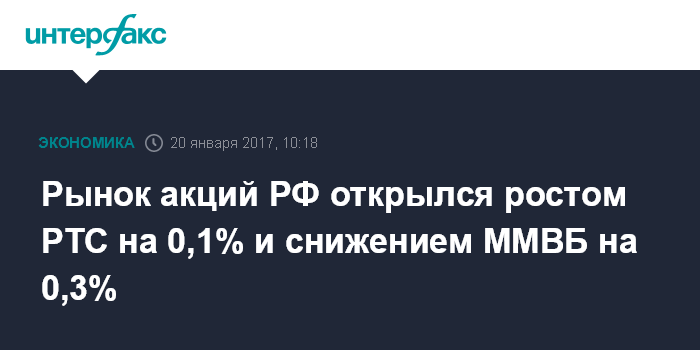 Рынок акций РФ открылся ростом РТС на 0,1% и снижением ММВБ на 0,3%