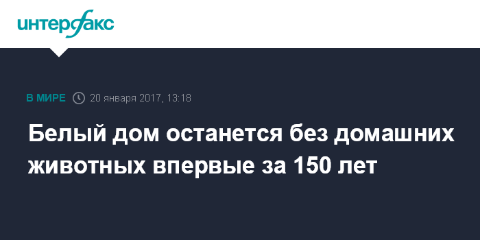 Москва. 20 января. INTERFAX.RU - Избранный президент США Дональд Трамп завершит переезд в Белый дом в считанные часы после инаугурации 20 января - традиция предполагает, что первую ночь после присяги новый глава государства проводит в своей резиденции, однако впервые за 150 лет семья президента не привезет с собой в Вашингтон домашних животных.