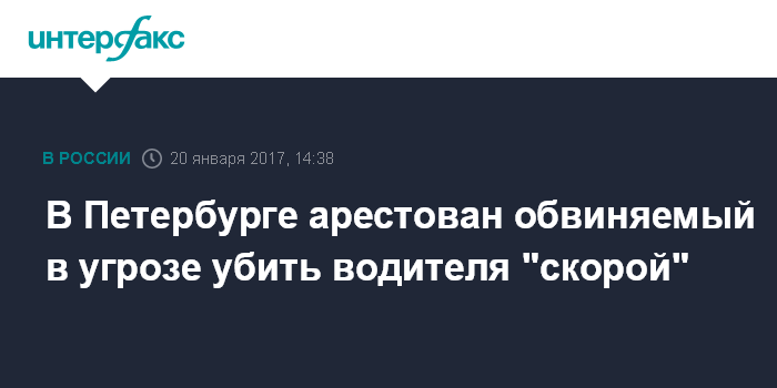 В Петербурге арестован обвиняемый в угрозе убить водителя "скорой"